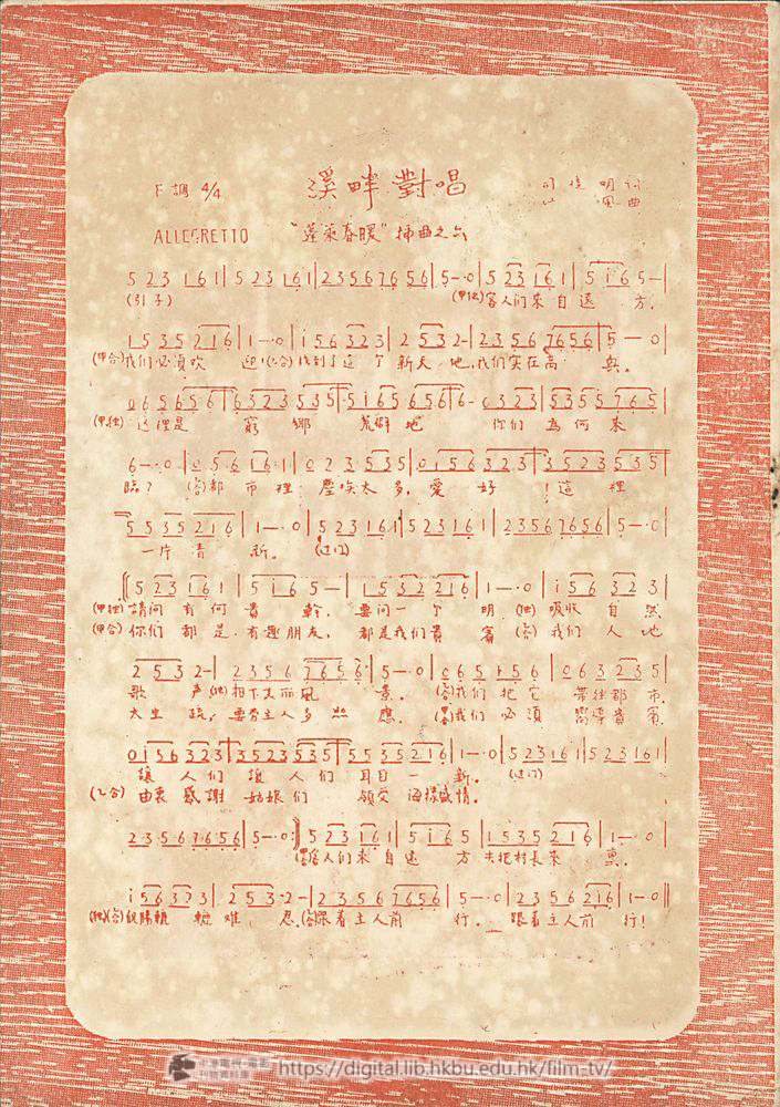 在拍攝時,趙雷和石英兩位演員也倍加賣力和認眞,務求每一個動作都要與曲中的歌詞相配,稍一不如意,卽耍求「再來一個」的重拍。這種嚴肅,緊張熱烈,而又虛心合作的態度,實爲近年影片製作中所稀有的。