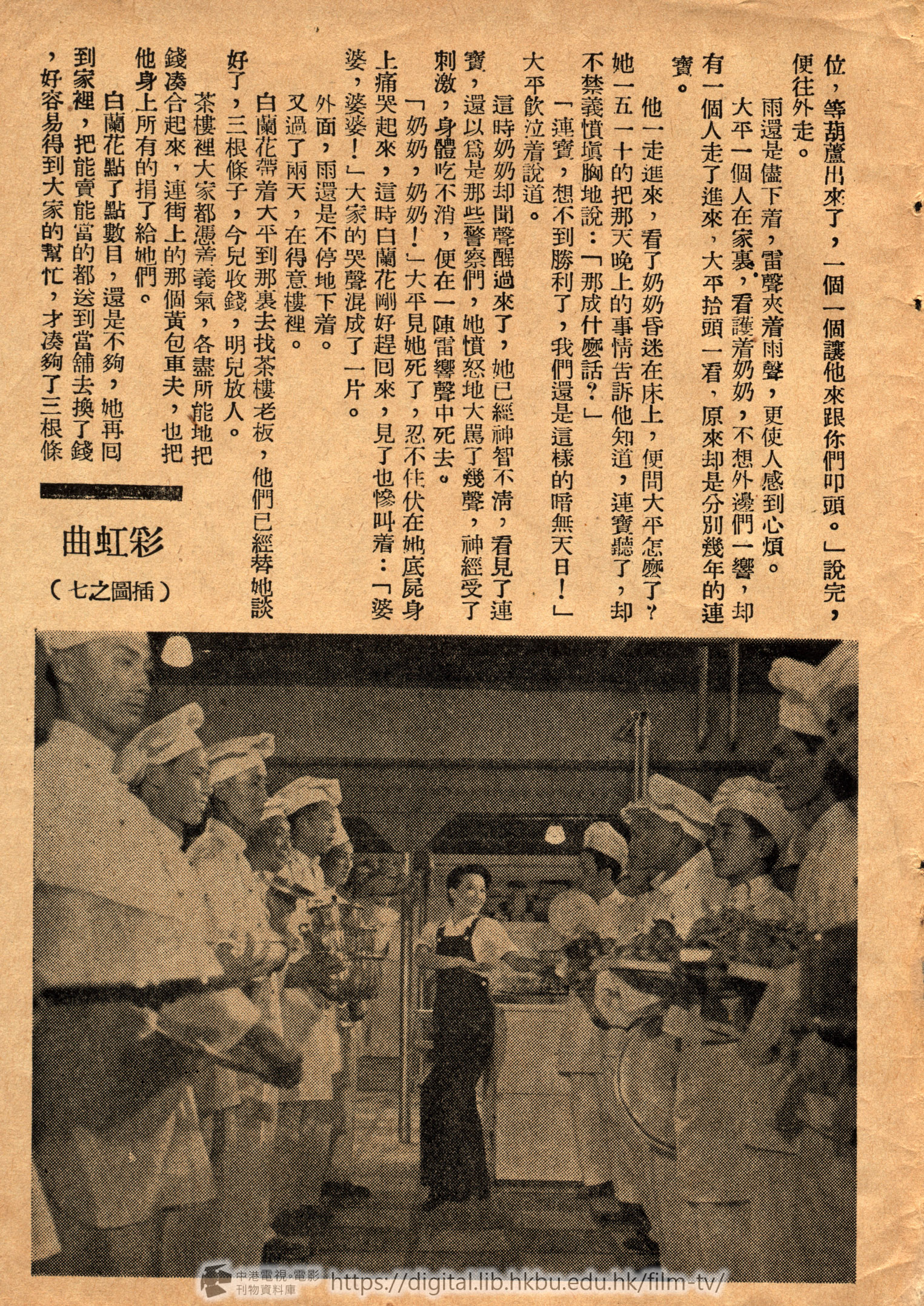 現在這部片已快完成,周璇,龔秋霞,都盡了她們最大的責任。岳楓爲了這戲也絞盡腦汁,幸虧編劇者陶秦做了副導演,替岳楓分了不少的勞,才使這「彩虹曲」放出了光華四射的彩燄。