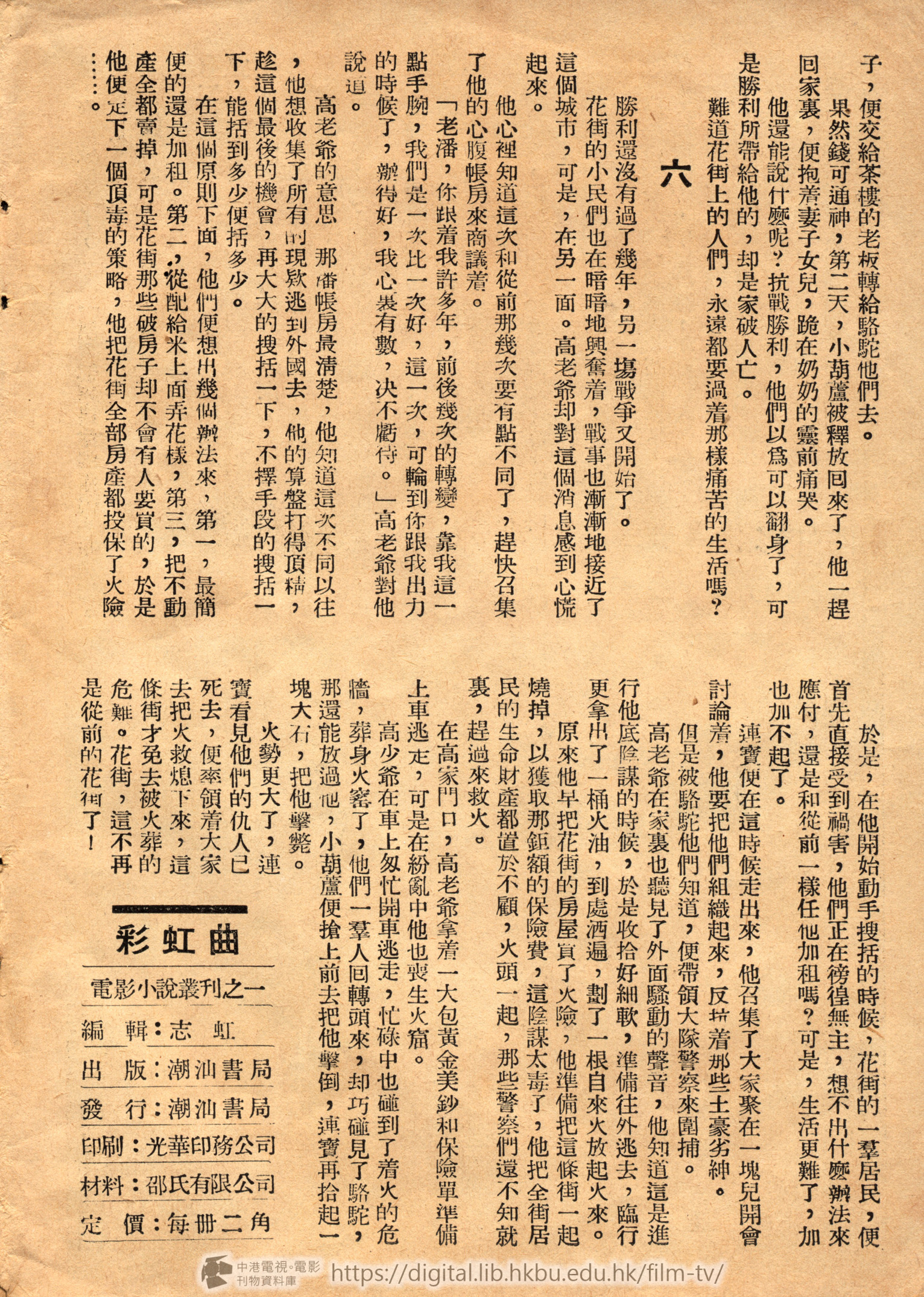 在這個原則下面,他們便想出幾個例法來,第一,最簡便的還是加租。第二,從配給米上面弄花樣,第三,把不動產全都賣掉,可是花街那些破房子却不會有人要買的,於是他便定下一個頂毒的策略,他把花街全部房產都投保了火險……。