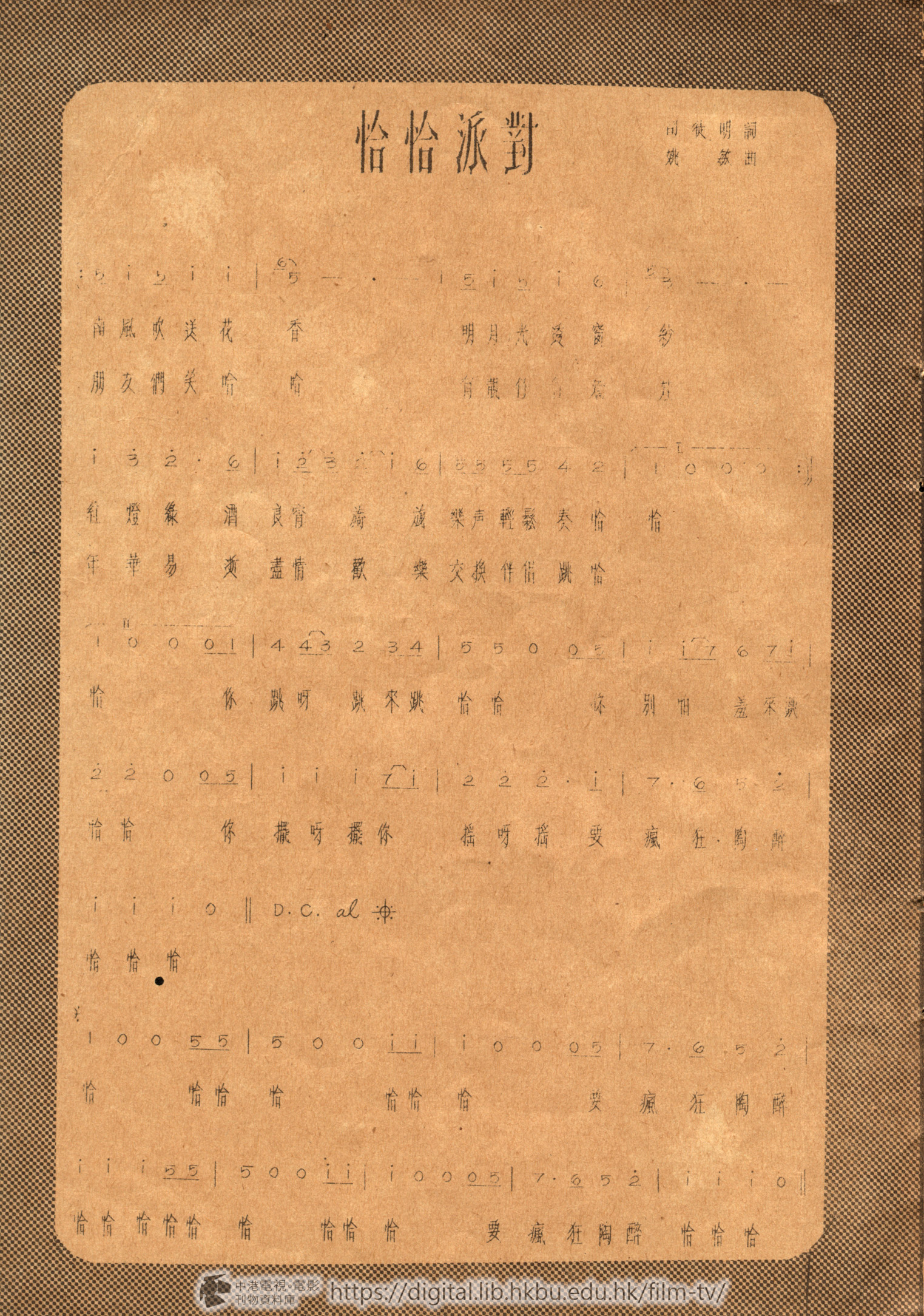 紅燈綠酒良宵旖旎樂声輕鬆奏恰恰