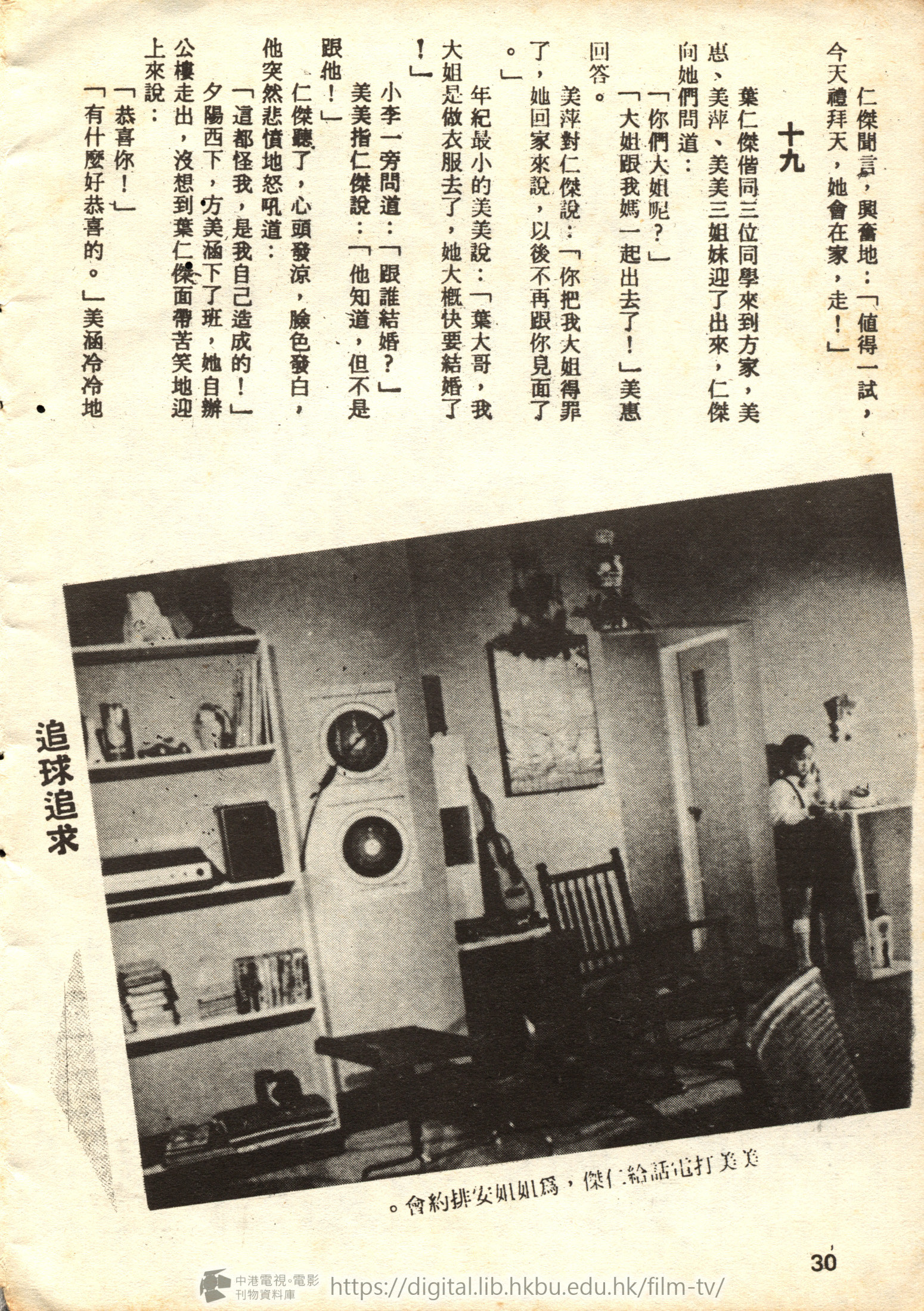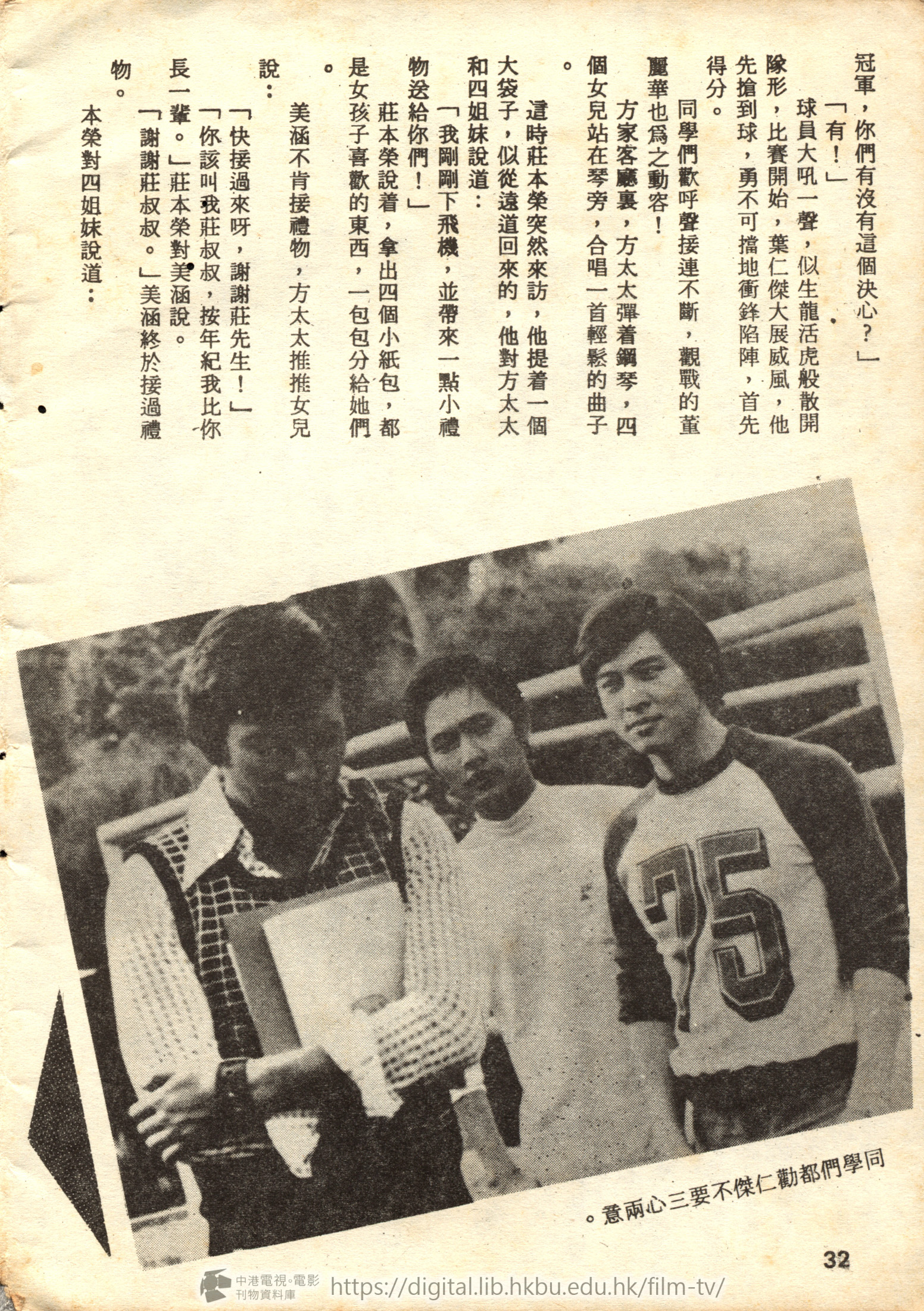 年輕英俊的葉仁傑是甲隊的主力球員,他衝鋒陷陣,大顯身手,並不時地看着在一旁觀戰的女同學董麗華的反應。