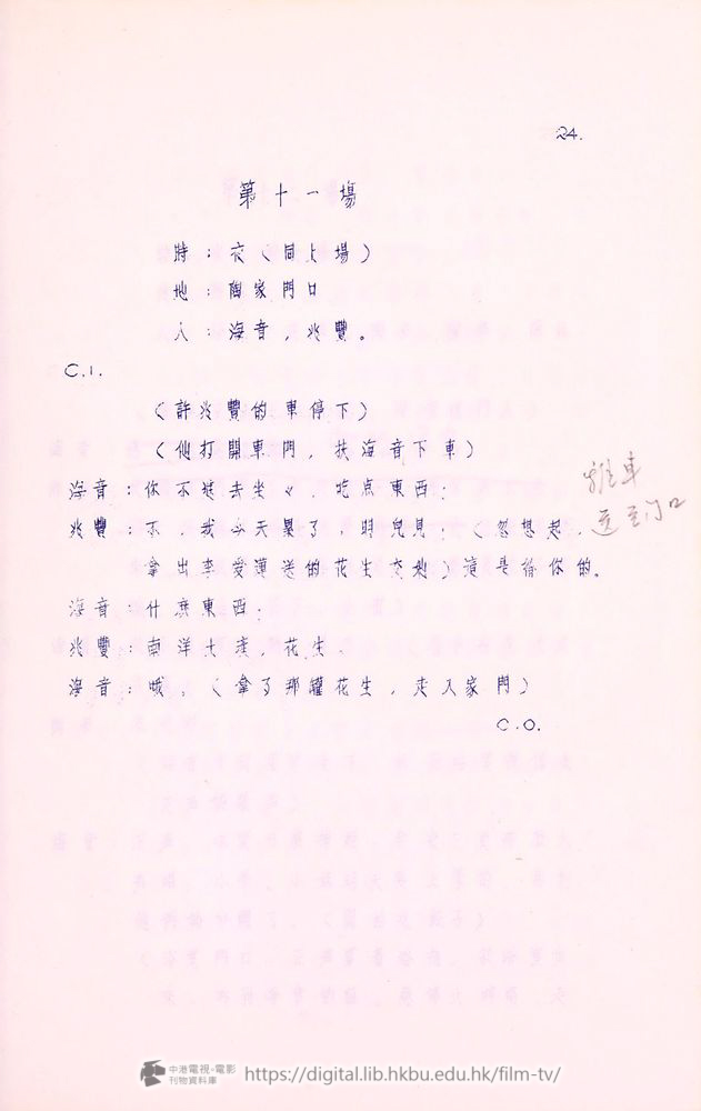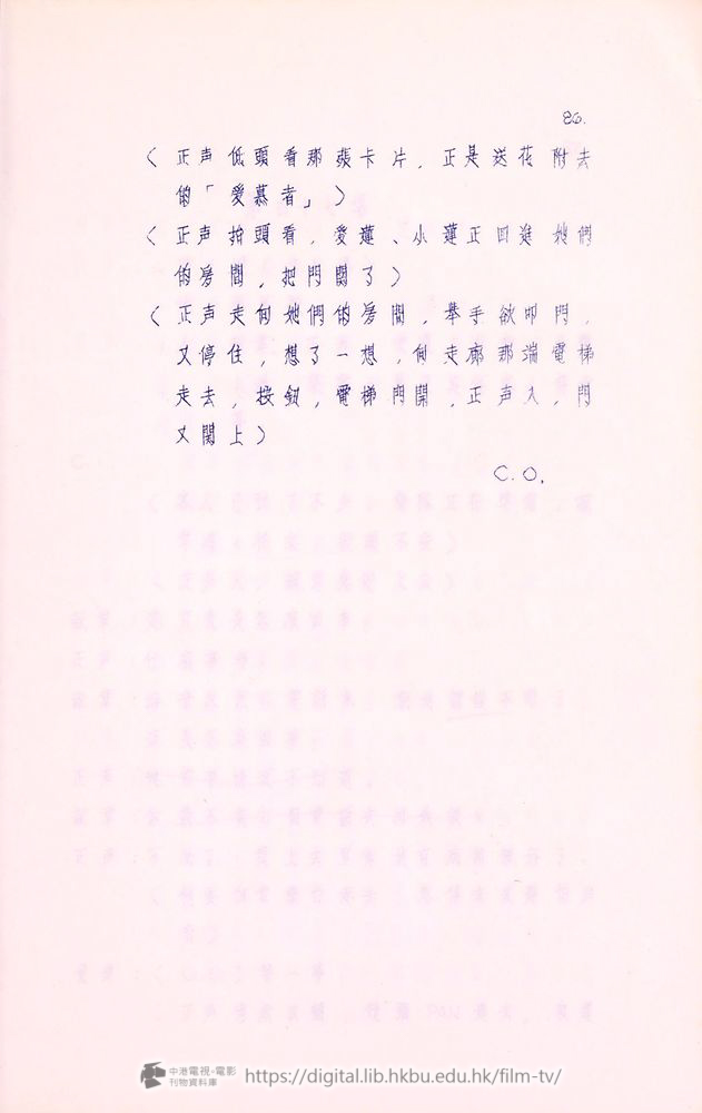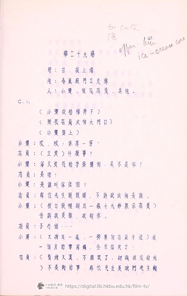正声:(向爰蓮)謝々你⋯⋯(發現她襟上佩着一朵花,正是他経常送的那種,不覺凝視)