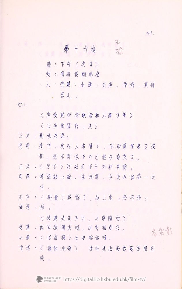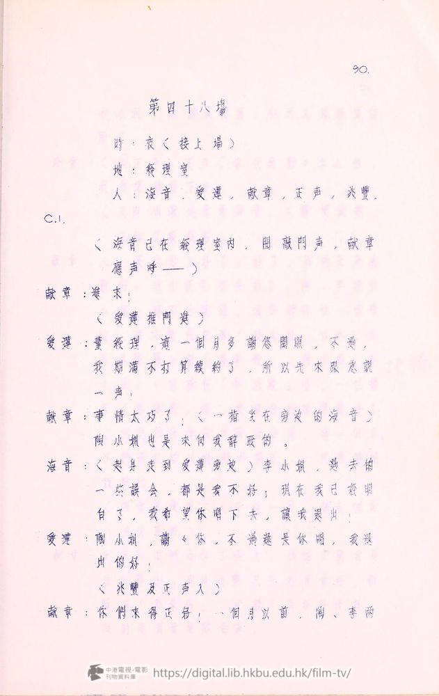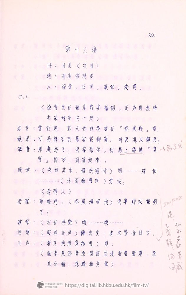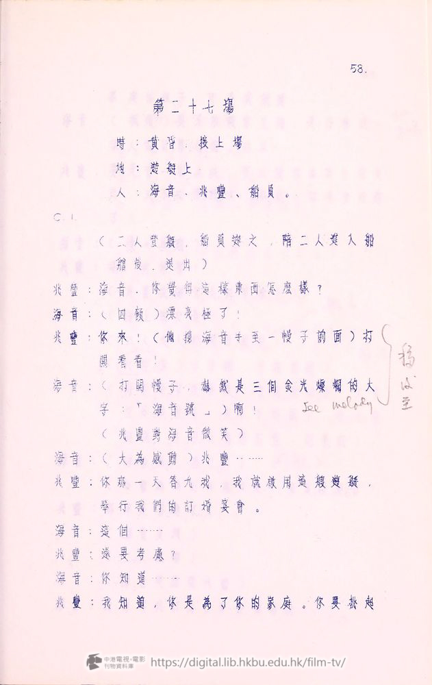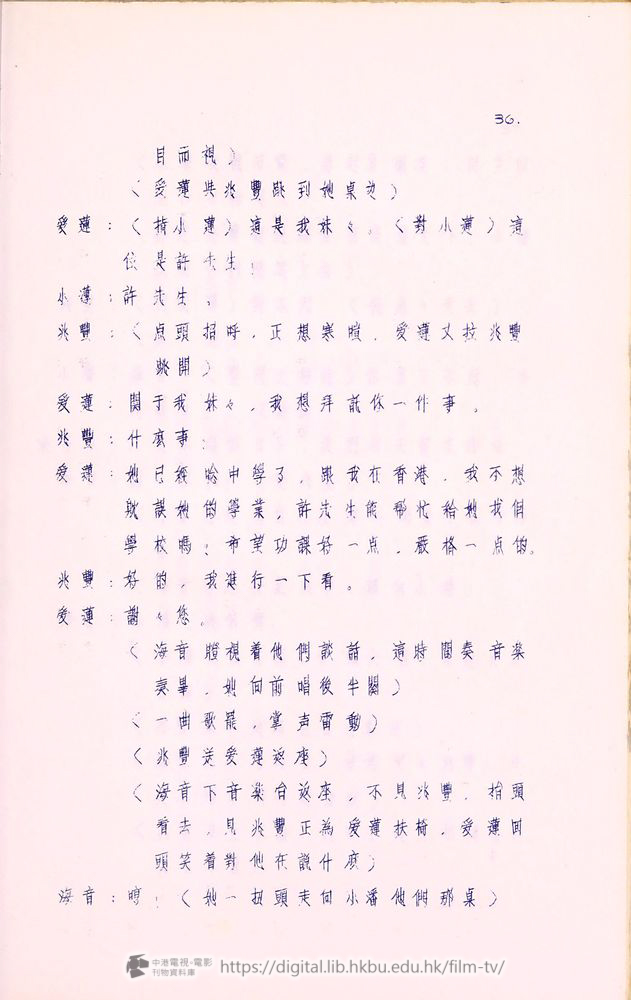爰蓮:你只知道他開着航運公司,可不知道他還是摩天大飯店的董事,我所以住在這兒,就為了這兒的「春風殿」,是香港第一流送縂會,要是我一來就能在「春風殿」唱,對我的前途大有幫助。許兆豐,這是我進行這件事的関鍵!