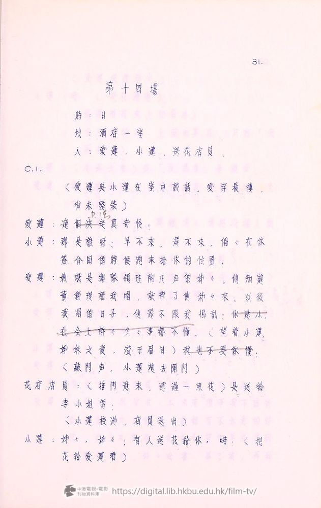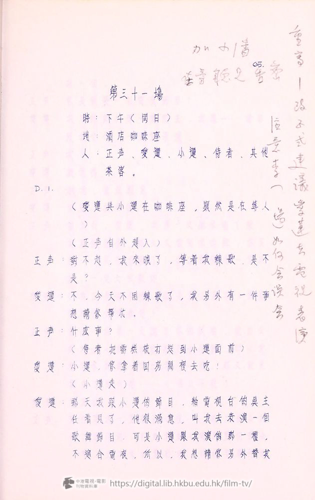小蓮:(想叫她囬來)姊々⋯⋯(但爰蓮並不囬頭,直走向自己房間,小蓮追了幾步未追上,忽轉身跑囬正声那裡)哦,我差一点忘了,姊々有樣東西給你——