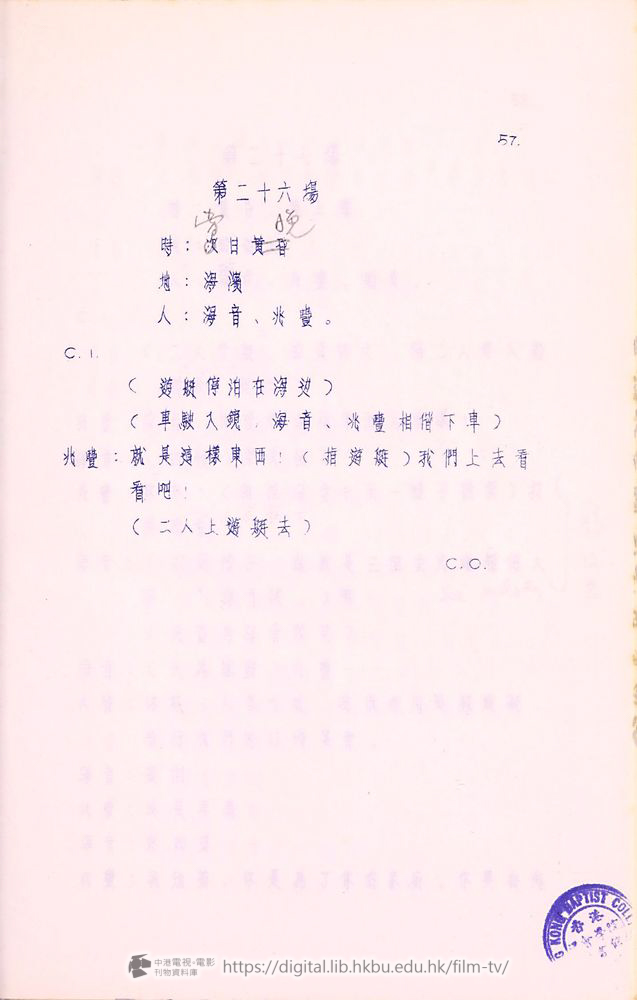 献章:事情太巧了!(一指坐在旁边的海音)陶小姐也是來向我辞聀的。