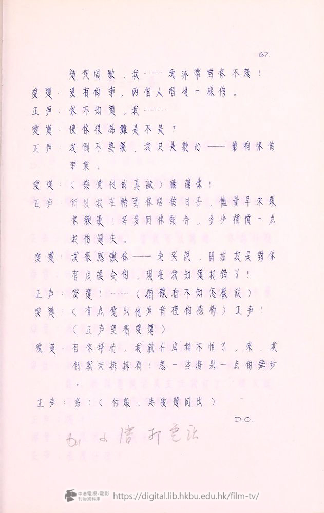 海音:(起身走到爰蓮旁边)李小姐,過去的一些誤会,都是我不好;現在我已経明白了,我希望你唱下去,讓我退出!