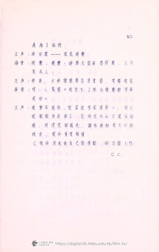 正声:(走過來)對不起,我們要開始工作了!(把客人推出門外,帶上門)