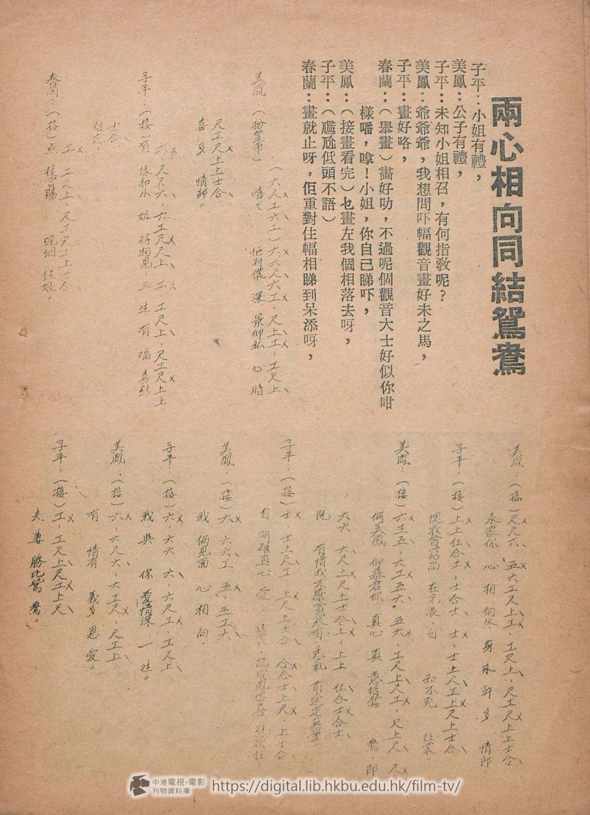 美鳳:(接)何美鳳 仰慕君你 真心 真 意結鴛 鴦,郎