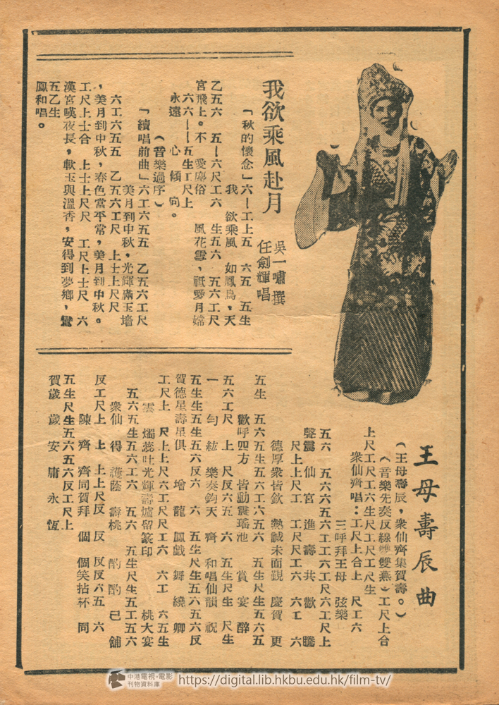 風流天子唐明皇,一生的風流韻事,生平艷迹,自古以來,便成爲文人騷士,改編故事的絕好資料,如白居易的長詩「長恨歌」,淸洪昇的戲曲「長生殿」,都脫胎于此。國語片製片商也利用過這些題材,拍製了『梅妃」與「楊貴妃」,都曾風靡一時,足見觀衆對這故事的喜愛了。現在,粤語歌唱片新進導演顧文宗,又選擇了其中兩段家喩戶曉,膾炙人口,最精彩最動人的傳奇「唐明皇遊月宮」與「楊貴妃入宫」,用巧妙的藝術手腕,改編成「風流天子」的影片、這部片會受到觀衆的重視與歡迎,是無須置喙的。