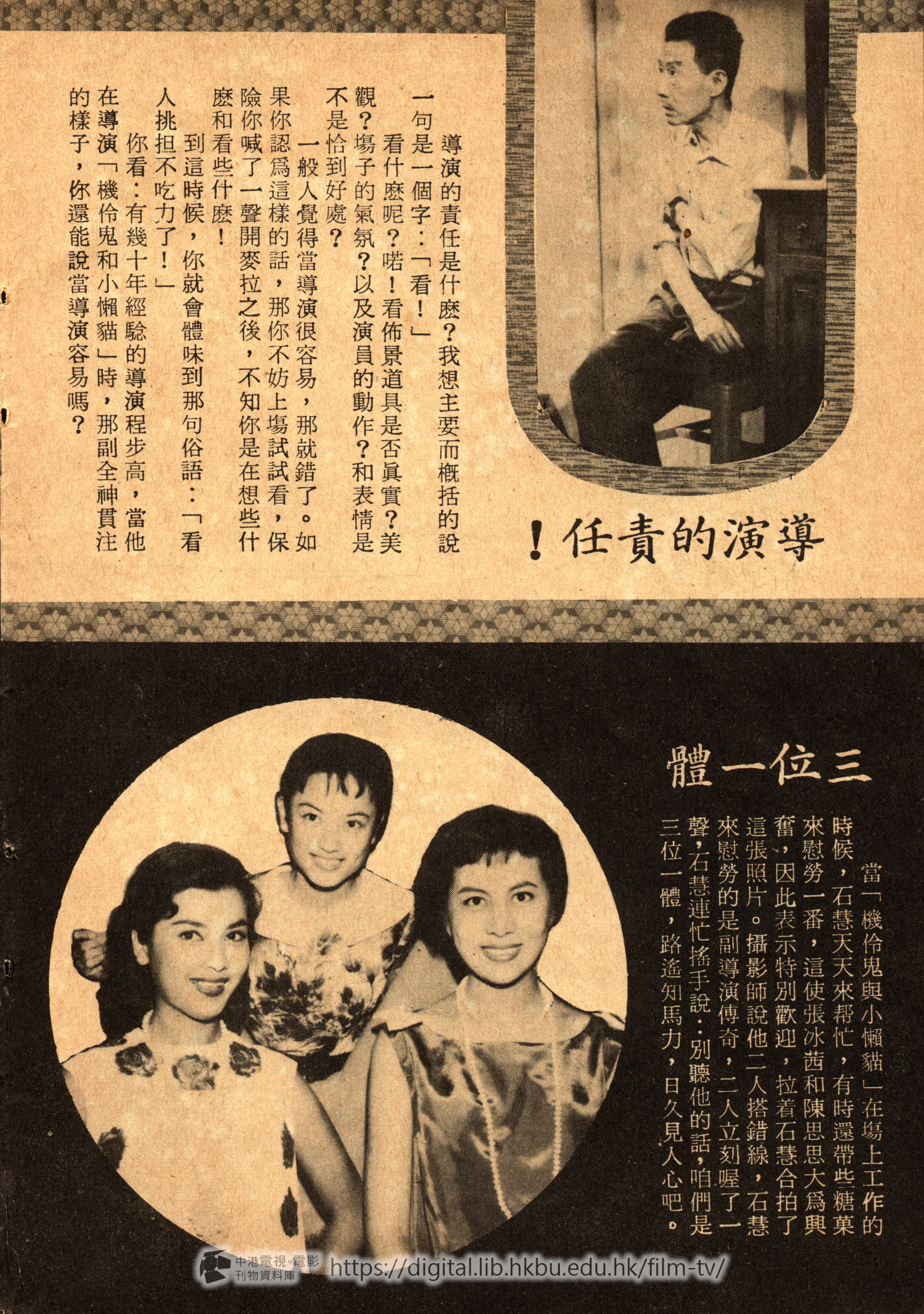 除此,傅奇還担任了「機伶鬼與小懶貓」副導演,雖然他是初次上塲,但由於他出身演員,熟知塲上情况,又加上他肯處處鑽硏,對導演程步高,却確實帮了不少忙。