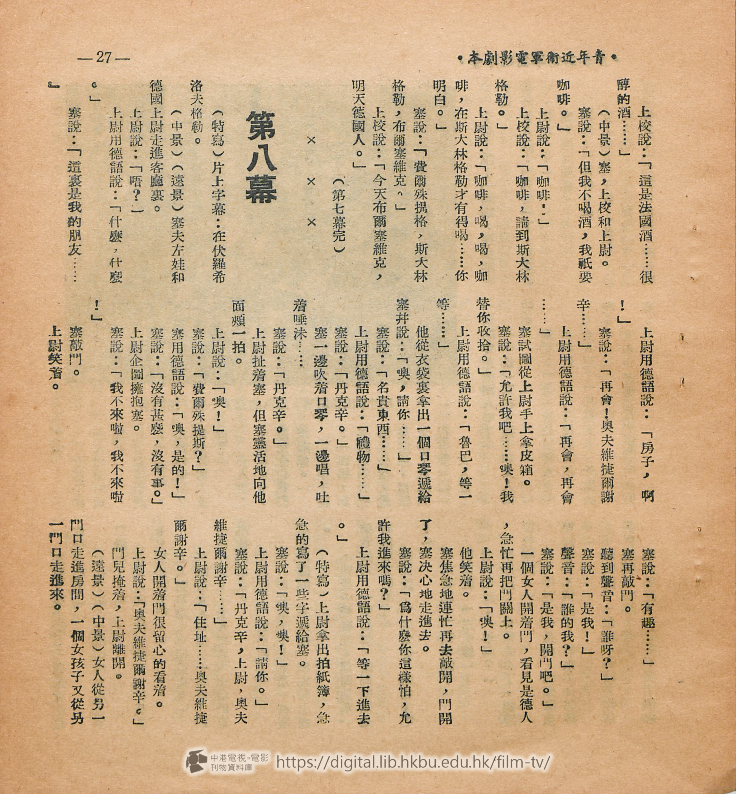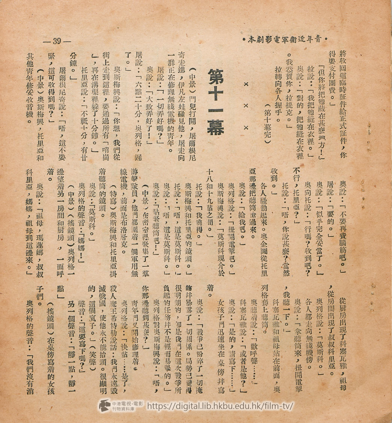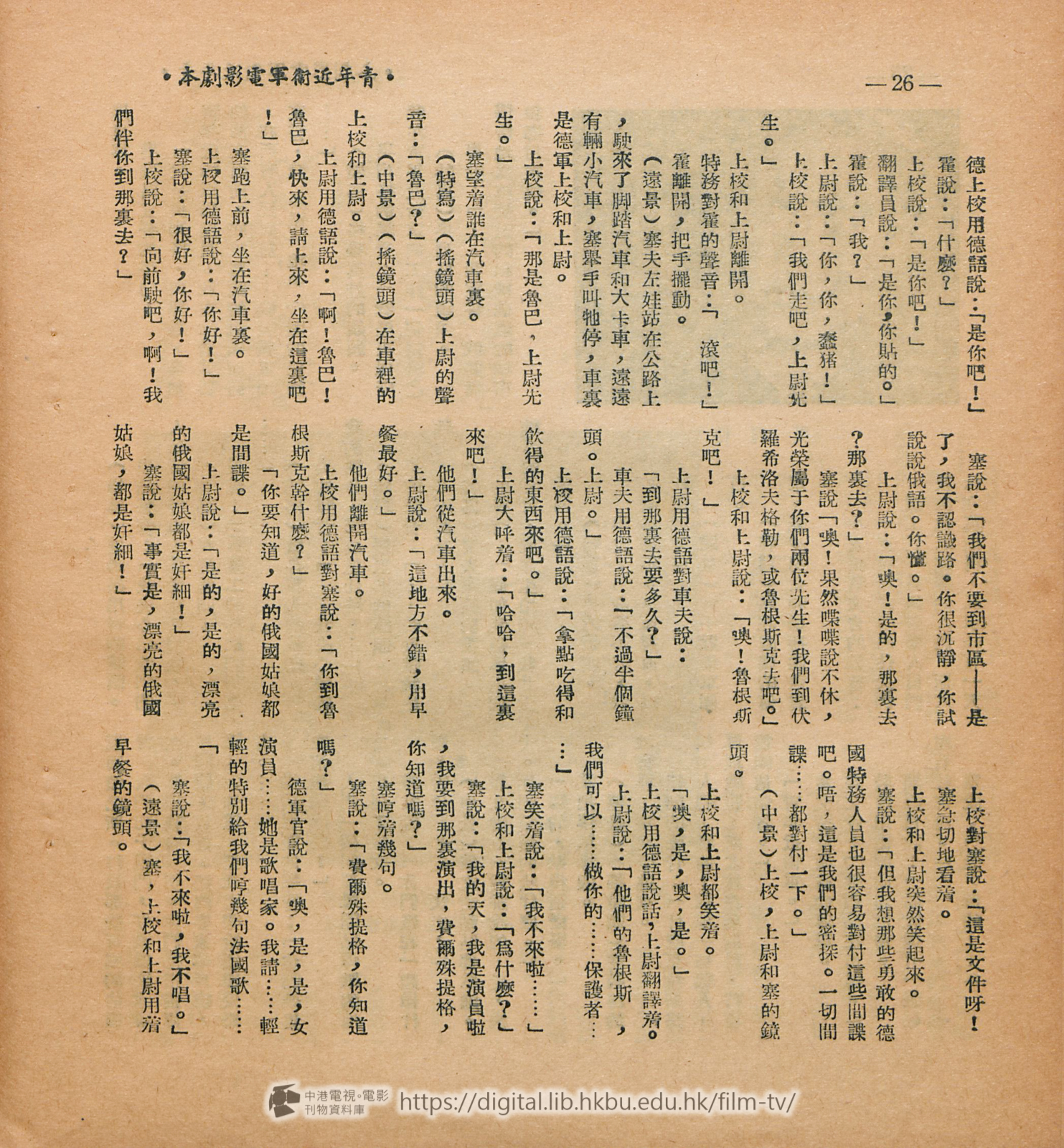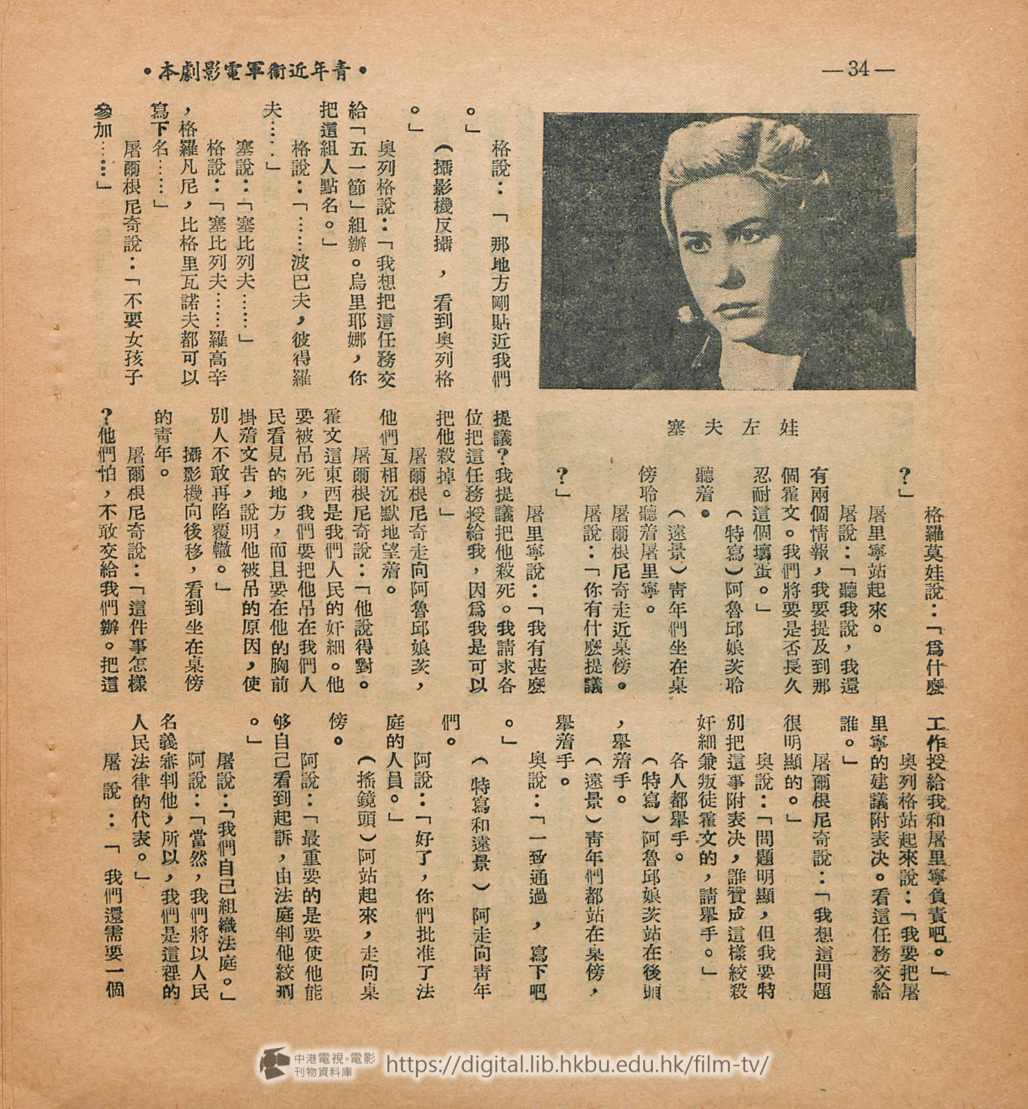 劇本每一段或毎一句話都是很有力和鼓勵人心的。但譯者得 聲明一下,本片的阈語拷貝是在莫斯科配音的,參加工作的是山東藉同志,所說出的對白未能完全與這狸譯出的相同,但譯者會儘力設法避免有極大的距離,經過三次的修改,使譯文和俄文原文及山東鄕土語氣的對白能够儘量減少差異。