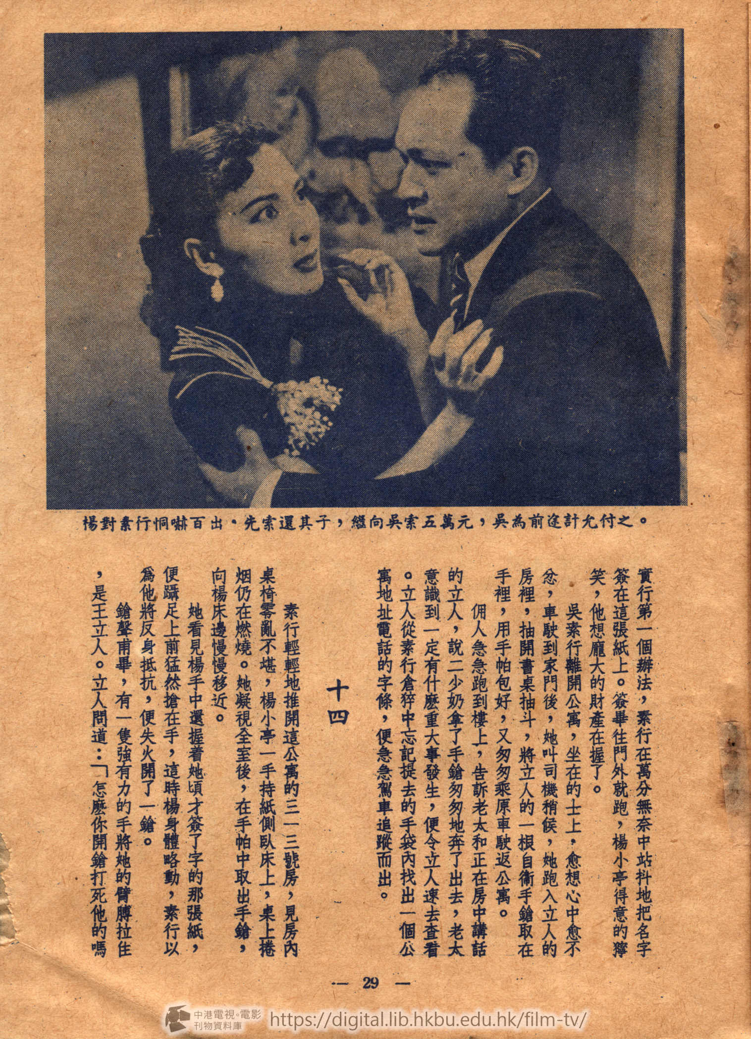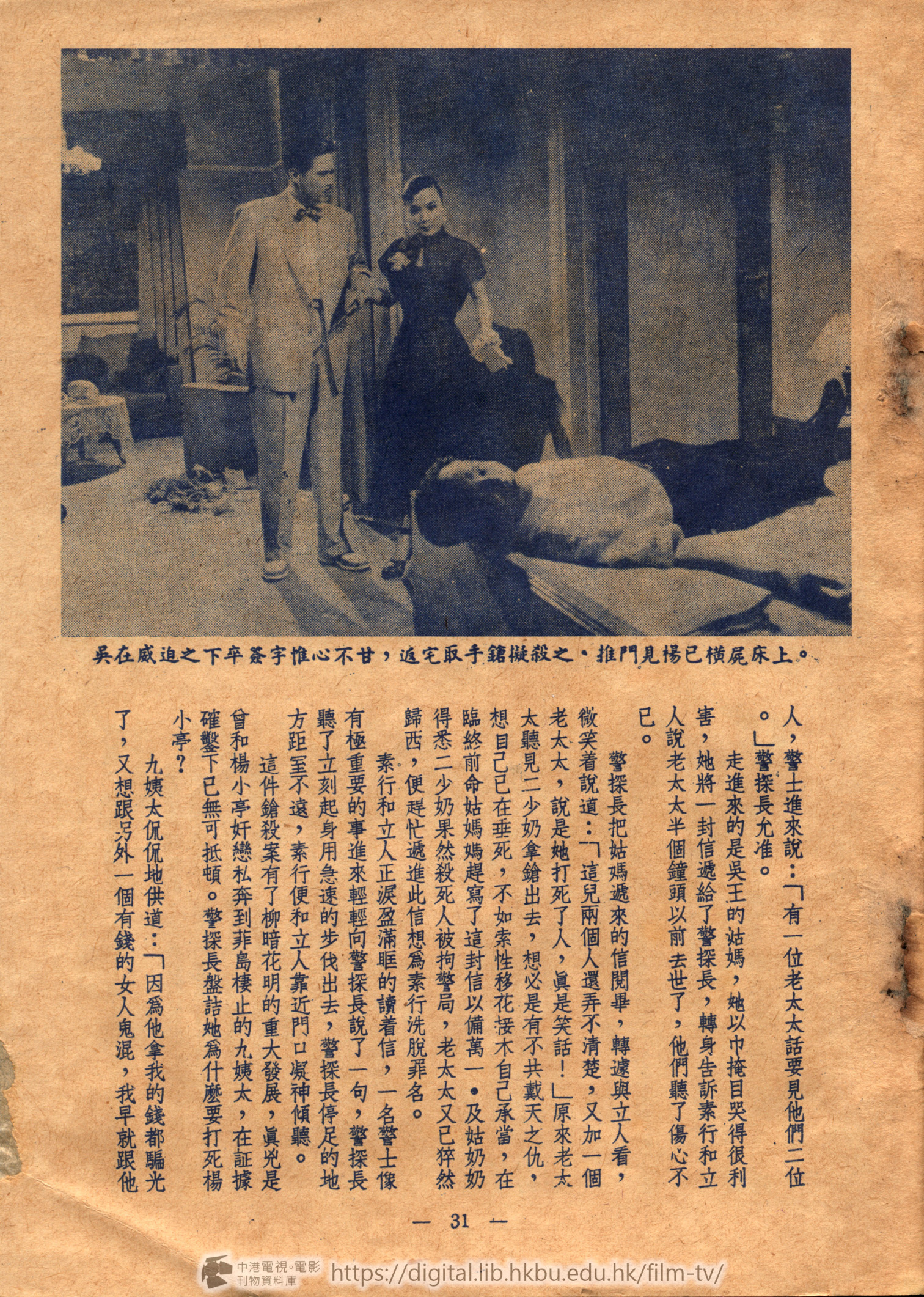 素行輕輕地推開這公當三一三號房,見房內桌椅零亂不堪,楊小亭一手持紙側臥床上,桌上捲烟仍在燃燒。她凝視全室後,在手帕中取出手鎗,向楊床邊慢慢移近。