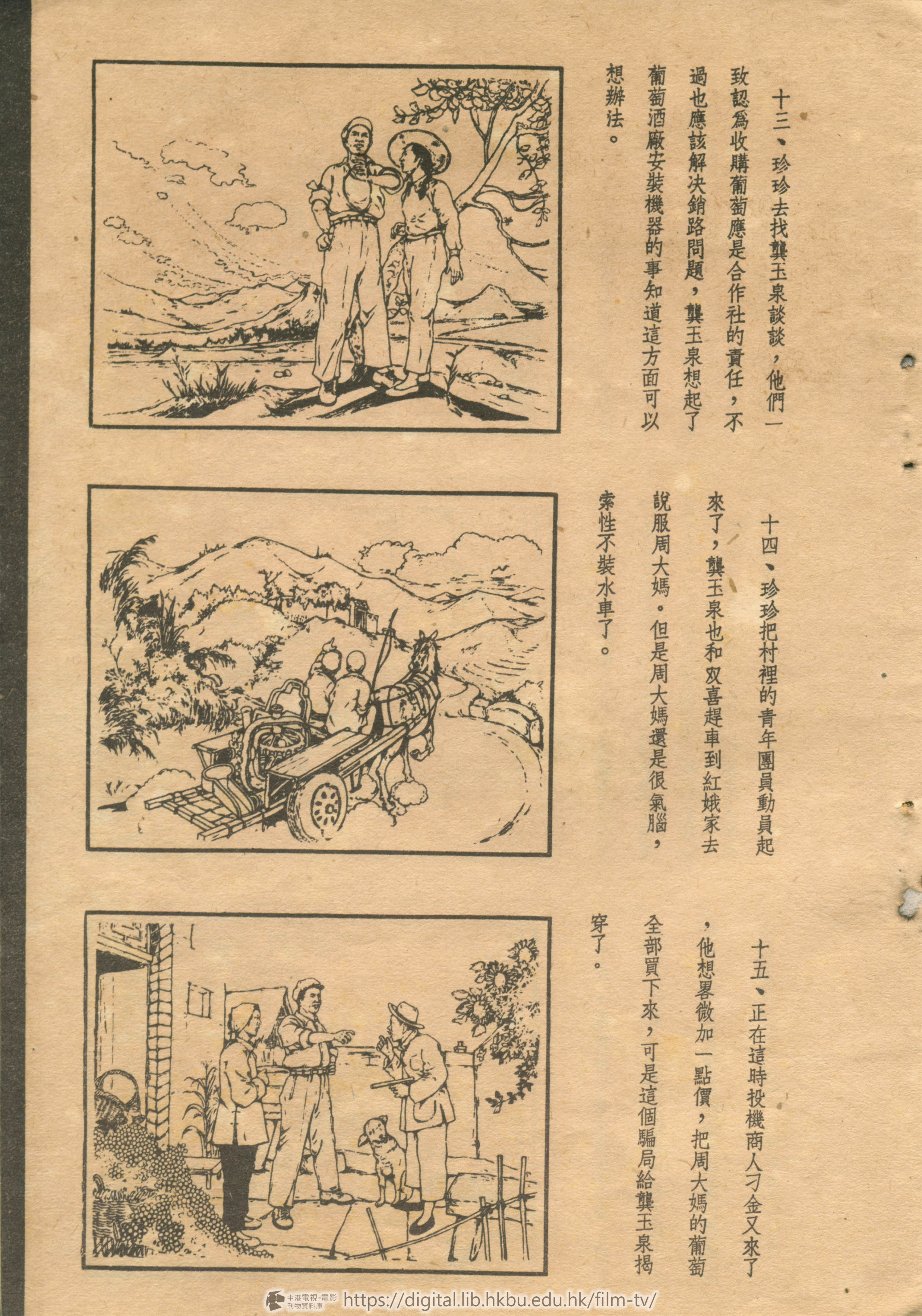 十九、他們正在互相檢討和討論,這時,恰巧工會的囘信來了,珍珍唸給大家聽,葡萄酒廠開工了葡萄的銷路有辦法了。