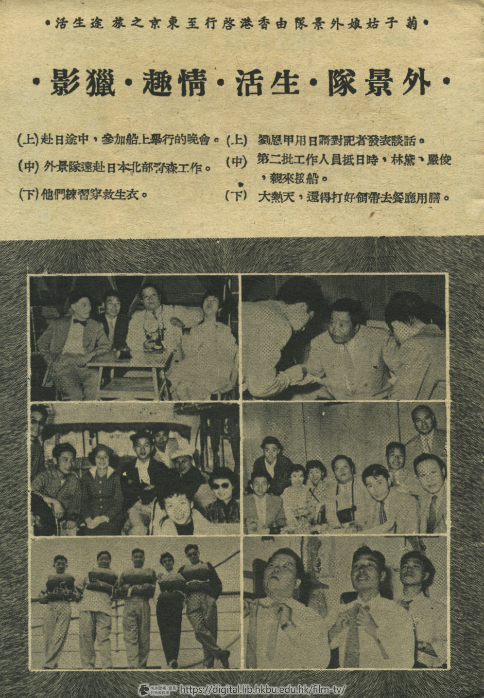 「菊子姑娘」拍攝外景時,我會目睹工作過程的緊張。因爲人手的缺乏,差不多每個人都身兼數職,尤其導演,對內要指揮一切,對外要交際聯絡。閒下來就拿起劇本分鏡頭。演員中林黛要忙着接見記者,趕赴電影界的邀請,有空還得去選購衣料,設計戲服。劉思甲—這銀幕上的諧角,私底下也是製造笑料的來源,老在休息的時候引人笑口常開,又因他懂得日本話,去哪兒總少不了他當翻譯。可是,他們誰也沒想獨自溜去找娛樂,在拍戲第一的原則下,過着團體生活。我在旁觀者的立塲,不禁羨慕他們同甘共苦的精神,和毫不苟且的作風。