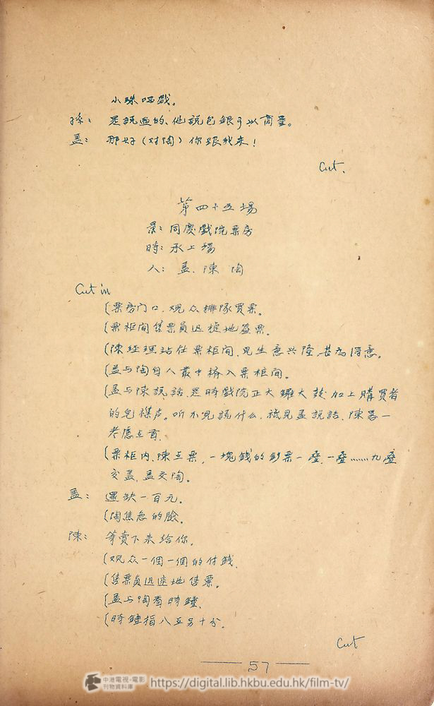 (陳自售票處接五塊鈔票交盖,盖交陶。