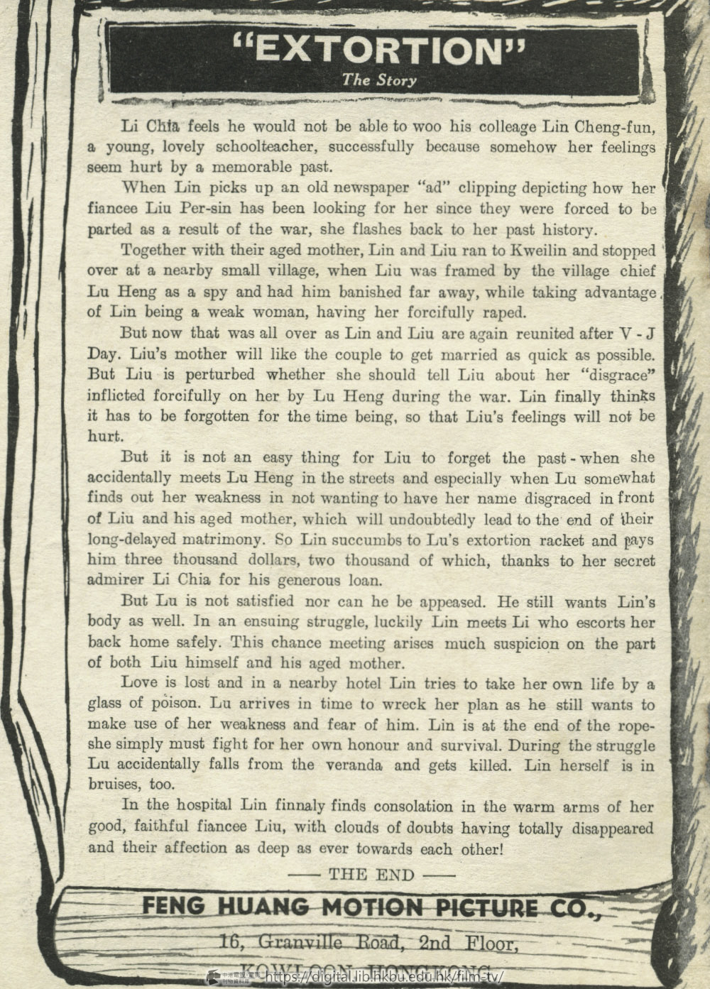 When Lin picks up an old newspaper "ad" clipping depicting how her fiancee Liu Per-sin has been looking for her since they were forced to be parted as a result of the war, she flashes back to her past history.