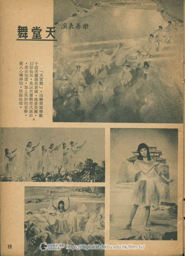 「天堂舞」,由樂蒂領導數十位美麗演員表演,佈景美麗,幻似仙宮,是以芭蕾舞形式演出,美女如雲,加上美妙的音樂,使人心曠神怡,恍臨仙境。
